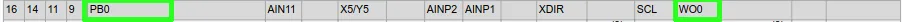 Zaglądamy w kolumnę od timera jaki konfigurujemy, a więc TCA0. W tej kolumnie zobaczyć możemy kilka znaczników WOn. WO, oznacza „Waveform Output”, ja wybieram pierwsze z brzegu – WO0. Jak możesz zauważyć, tych znaczników jest więcej niż 3 sztuki jak mamy do wyboru w rejestrze CTRLB. Pamiętaj, że możemy podwoić ilość wyjść PWM, poprzez wcześniej wspomniany podział timera TCA0.